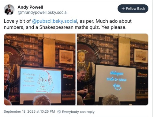 § We aim to be as accessible as possible but we recognise that holding events in a pub meeting room could limit access for those with mobility issues or religious observances; in our blog we frequently share news of other science events in the area at fully accessible venues such as the Royal Institution.